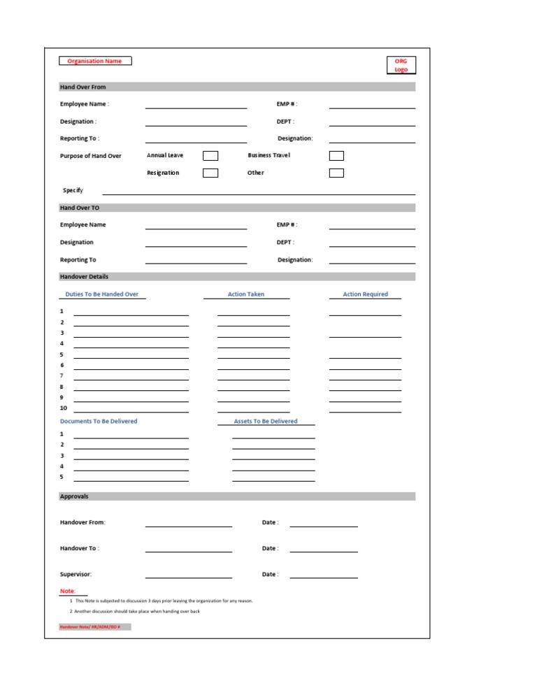 Free 5 Handover Note Templates In Pdf Ms Word Excel