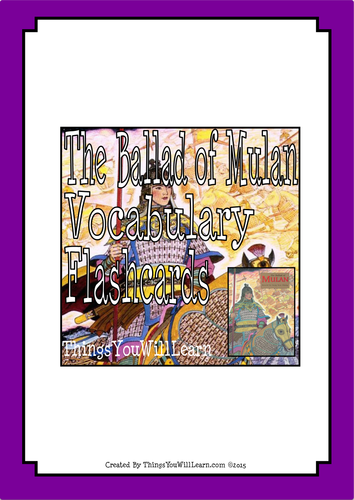Ballad mulan vocabulary powerpoint. The ballad of mulan vocabulary cards. Mulan ballad